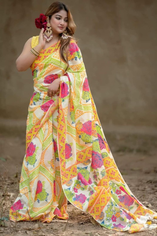 হাফ সিল্ক স্কিন প্রিন্ট শাড়ি