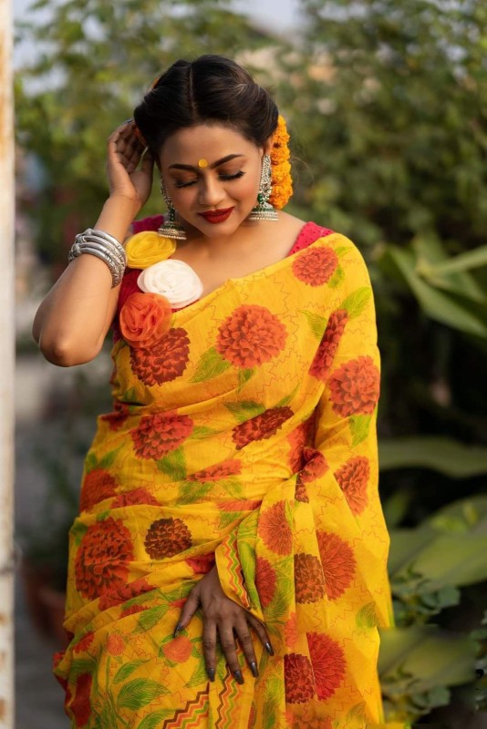 হাফ সিল্ক স্কিন প্রিন্ট শাড়ি