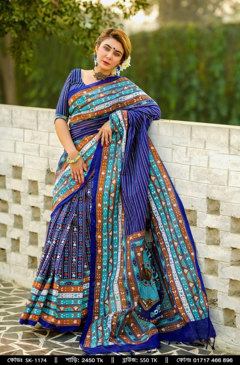 দেখতে অনেক সুন্দর এবংকাপড়ের মান খুবই ভাল রুচিসম্মত শাড়ি।শাড়ি : হাফ সিল্ককাজ : স্কিন প্রিন্টব্লাউজ পিস ছাড়া